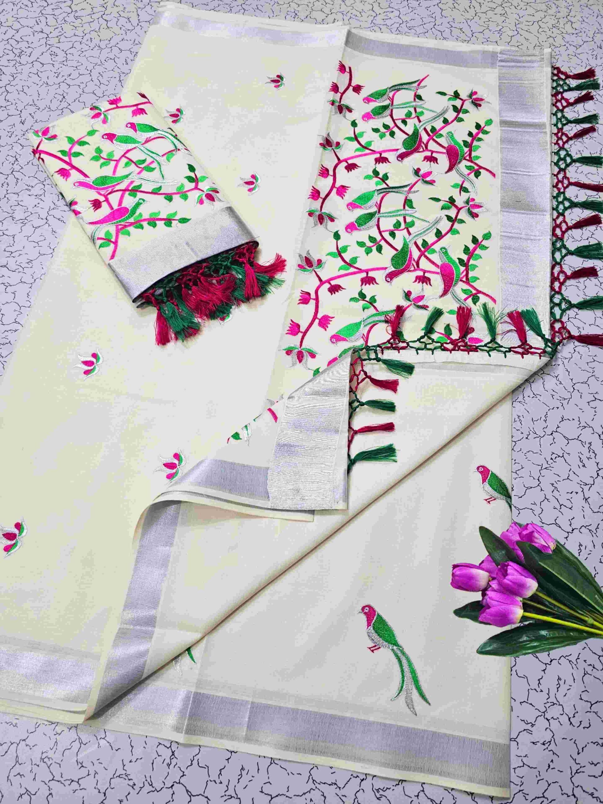 ๐Ÿฆ‹ KERALA COTTON SAREE WITH EMBROIDERY COLLECTION ๐Ÿฆš